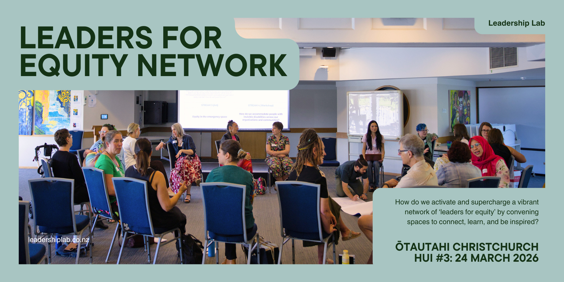 Hosted by Leadership Lab in partnership with Christchurch City Council, this hui is part of Leaders for Equity Network – a movement, not just a series. Grounded in Te Tiriti o Waitangi and Leadership Lab’s systems-change approach, these gatherings bring together the skills, insights, and commitment of a diverse group of leaders to inspire and influence real change.